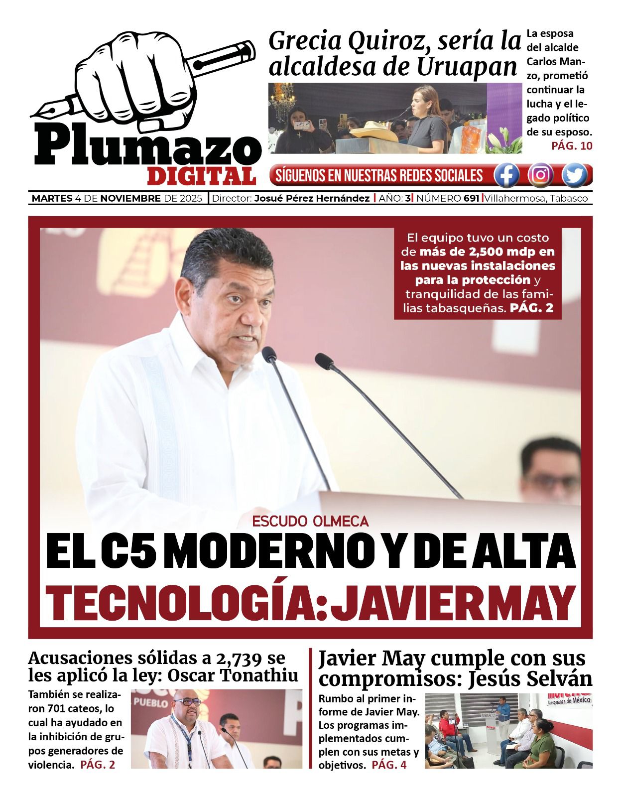 EDICION IMPRESA Nuestra portada del Diario Plumazo Digital del sábado 15 de noviembre 2025 admin Nov 15, 2025 0 Leer más...