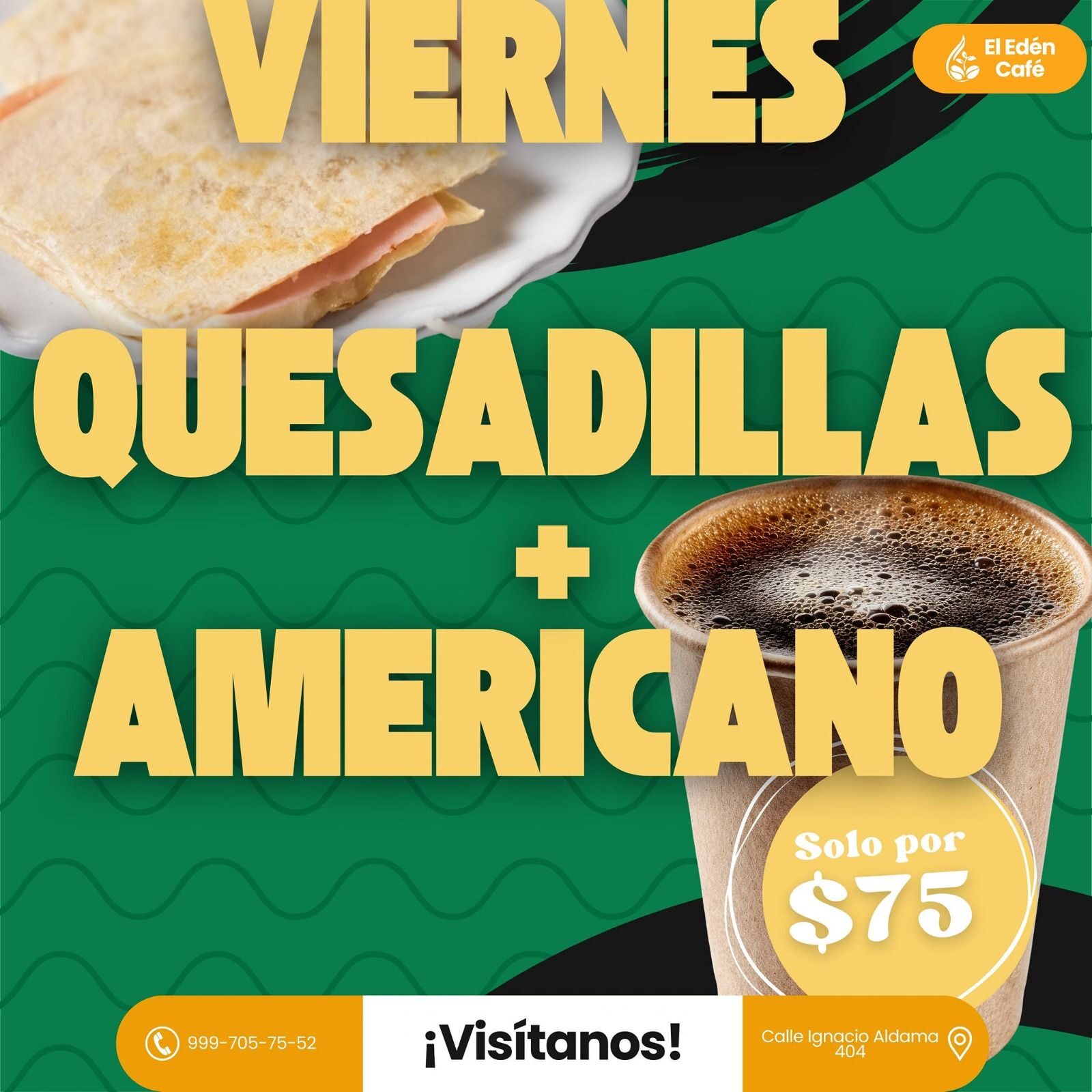 Villahermosa, Tabasco.-Como todos los viernes en el Edén Café, haya promociones de quesadillas, más un americano, por tan solo 75…